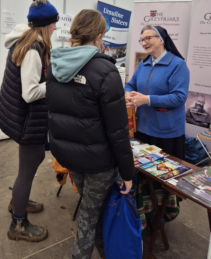 Recently at the Ploughing Championship in Screggan, Tullamore I had the privilege of spending most of the day at the Vocations Ireland Stand. I was graciously welcomed by Anne Marie Whelan from the Bon Secours Sisters in Cork and two Dominican Sisters. Later we were joined by two Franciscan priests. Time passed quickly as people of all ages who were passing through the Hub stopped by our stand for chat with us and mostly requested prayers for their families or themselves. Prayer intentions were submitted and placed in the box to be taken to the Poor Clare Monastery in Cork. Everyone who came to visit us was gracious in their conversations, sometimes curious, and all were friendly. We offered them our prayer cards and for the young people the prayer card of the newly canonised Saint Carlos Acutis was very popular – they see him as “their saint!” It truly was a joy to be present among so many thousands of people, if only for a day. I felt we made connections with many people and hopefully planted a few seeds of an idea that religious life is alive and well and is perhaps an option for others to consider. Thanks to Vocations Ireland for organising the days at the Ploughing – see you next year!