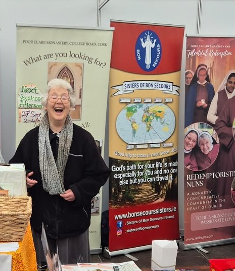 Last week, I carried out my task in the Vocations Ireland stand at the Ploughing Match. A stool was of enormous help as this work involved constant standing. Three Home Economics teachers and their pupils from St Dominic’s Cabra gave me my big surprise of the day.
